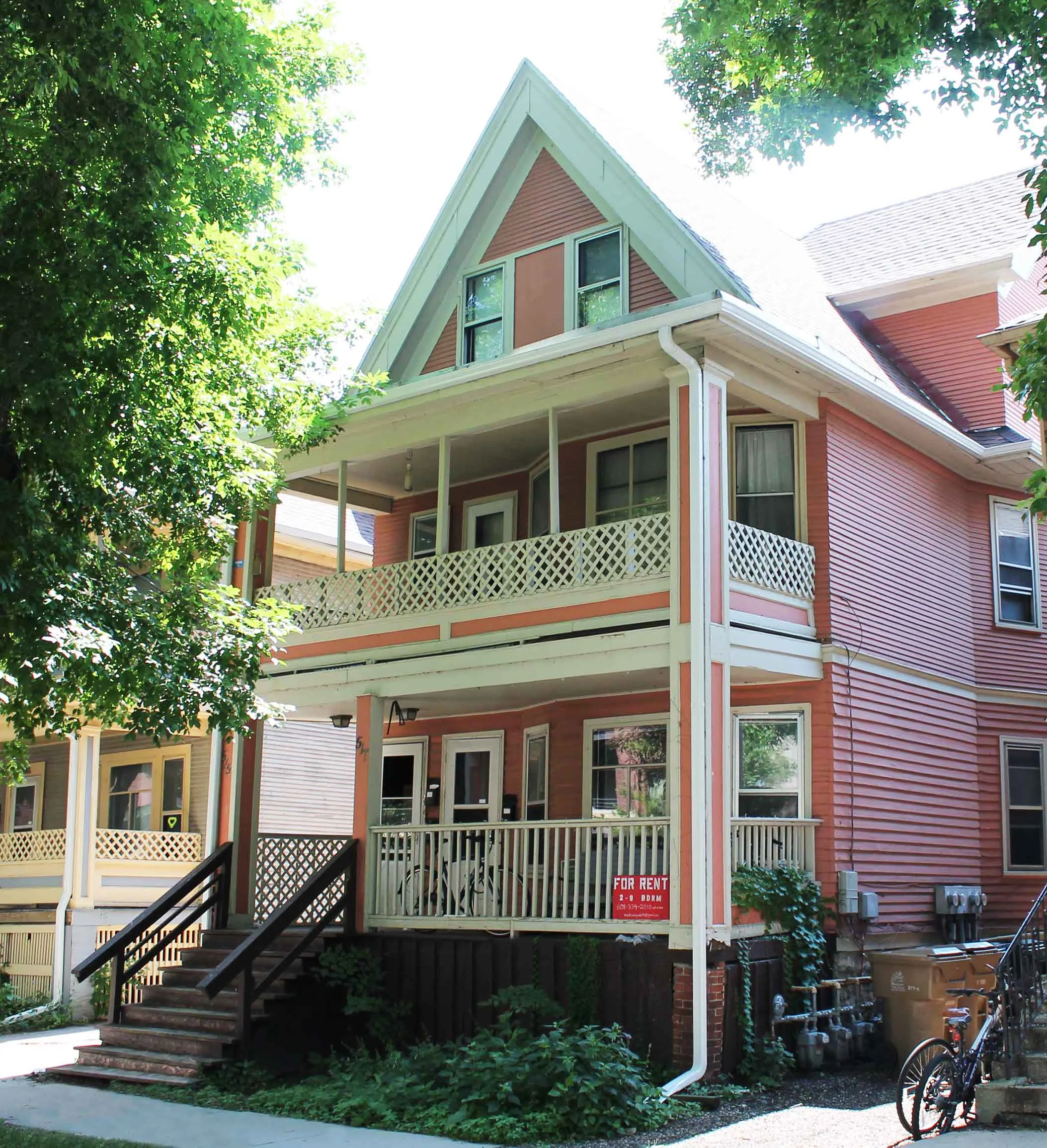 A classic Dayton Street 3 flat that is close to everything. Updated kitchens and bathrooms, huge front porches, and plenty of living space for large groups is the highlight of this house. This house sits blocks from State Street, Campus, and the Kohl Center. This house can be rented by the flat for 2, 3, or 4 bedroom units or rent the entire 9 bedroom house! Laundry in the basement and parking are available on property for an additional fee.